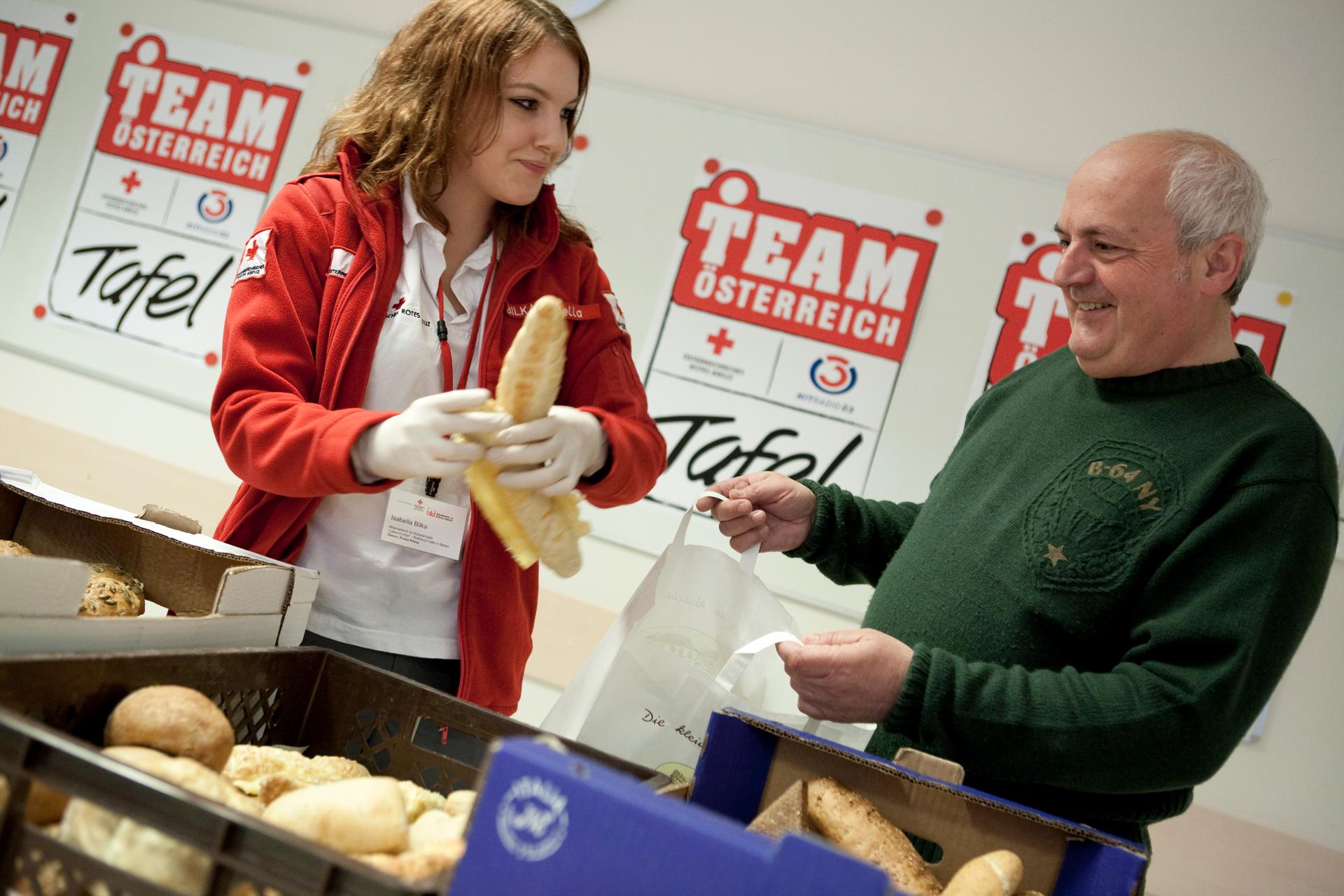 Das Rote Kreuz unterstützt Menschen in sozialen Notlagen mit zahlreichen Angeboten - unter anderem mit der Individuellen Spontanhilfe sowie der Ausgabe von kostenlosen Lebensmitteln durch die Team Österreich Tafel.